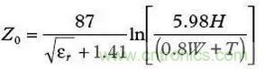 公式(6)可以用于計算一塊FR4板的特征阻抗。