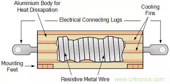 繞線(xiàn)電阻是將鎳鉻合金導(dǎo)線(xiàn)繞在氧化鋁陶瓷基底上,一圈一圈控制電阻大小。繞線(xiàn)電阻可以制作為精密電阻,容差可以到0.005%,同時(shí)溫度系數(shù)非常低,缺點(diǎn)是繞線(xiàn)電阻的寄生電感比較大,不能用于高頻。繞線(xiàn)電阻的體積可以做的很大,然后加外部散熱器,可以用作大功率電阻。