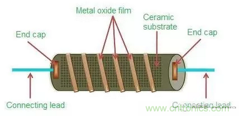 與金屬膜電阻結(jié)構(gòu)類(lèi)似,金屬氧化物膜主要是在陶瓷棒形成一層錫氧化物膜,為了增加電阻,可以在錫氧化物膜上加一層銻氧化物膜,然后在氧化物膜上加工出螺旋溝槽來(lái)精確控制電阻。金屬氧化物膜電阻最大的優(yōu)勢(shì)就是耐高溫。