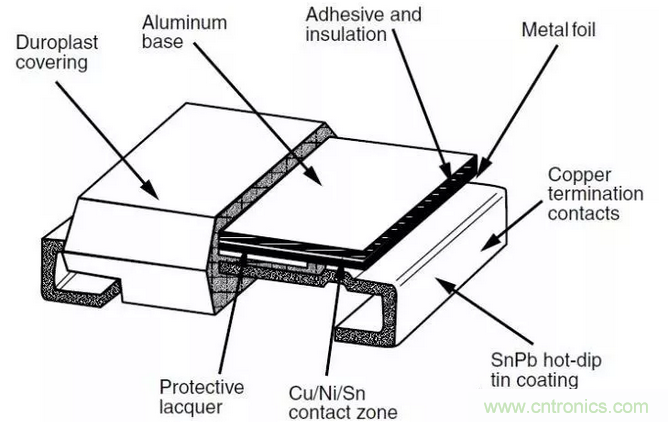 將氧化鋅陶瓷采用和MLCC類(lèi)似的工藝制作成多層型壓敏電阻,即 MLV。MLV封裝較小,通常是片狀的,額定電壓和通流能力都比MOV小很多,適用于低壓直流場(chǎng)合。