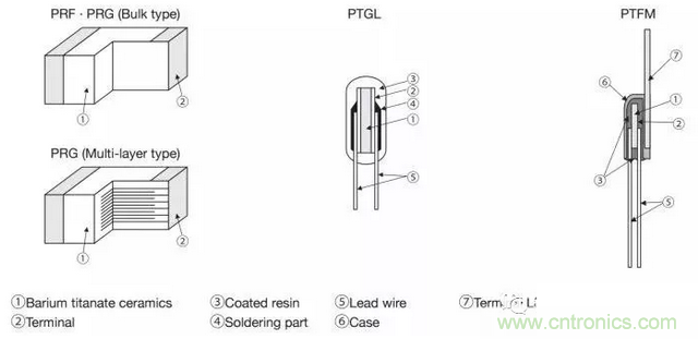 陶瓷PTC,其電阻材料是一種多晶體陶瓷,是碳酸鋇、二氧化鈦等多種材料的混合物燒結(jié)而成。PTC溫度系數(shù)具有很強(qiáng)的非線(xiàn)性,當(dāng)溫度超過(guò)一定閾值時(shí)電阻會(huì)變得很大,相當(dāng)于斷路,從而可以起到短路和過(guò)流保護(hù)的作用。