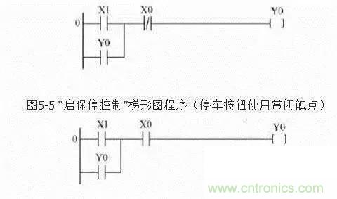 輸入端的電氣原理圖中停止按鈕SB0用常閉觸點(diǎn),串在控制線中,用于停機(jī)控制。 啟動(dòng)按鈕SB1用常開(kāi)觸點(diǎn)。在設(shè)計(jì)的兩個(gè)梯形圖完成的控制功能相同,但停機(jī)信號(hào)X0使用的觸點(diǎn)類型不同,那么連接在端點(diǎn)的外部停機(jī)按鈕觸點(diǎn)類型也就不同