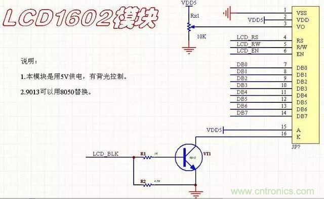 8、LCD1602字符液晶模塊(KS0066)最常用的字符液晶模塊,只能顯示數字和字符,可4位或8位控制,帶背光功能。