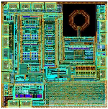 射頻無線模塊或者獨立的射頻芯片,從電路設計到版圖設計,完全屬于全定制設計方式。設計人員在標準版圖設計和半定制版圖設計的基礎上,不斷開發(fā)出專用的芯片射頻產品。圖6為某射頻公司自行設計的5GHz通信產品全定制版圖案例,即版圖為全手工設計,芯片制造采用180nm射頻工藝,其數(shù)據(jù)率達到5Gbps。