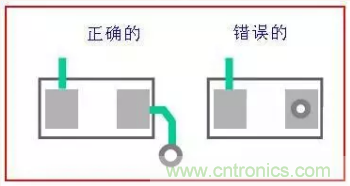 注意通孔最好不要打在焊盤上,容易引起漏錫虛焊。