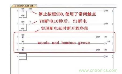 當然實現斷電延時斷開的編制方法很多,這里不再一一例舉。