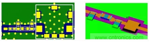 過孔是引起RF 通道上阻抗不連續(xù)性的重要因素之一,如果信號(hào)頻率大于1GHz,就要考慮過孔的影響。