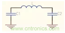 若經(jīng)過嚴(yán)格的物理理論推導(dǎo)和近似分析,可以把過孔的等效電路模型為一個(gè)電感兩端各串聯(lián)一個(gè)接地電容,如圖1所示。