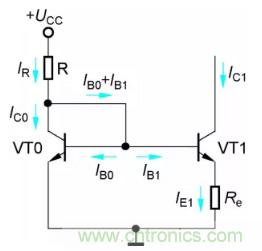 當(dāng)Re0=Re1時(shí),IC1仍然等于IR,但此電路的IR由式(2-4)約定,比式(2-2)的IR小,一般用于前置放大器的輸入級(jí)。