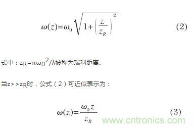 高斯光束波前的曲率半徑在z軸方向上的分布滿足: