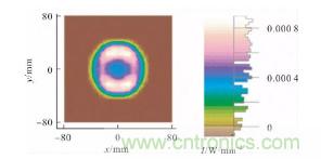 圖8 光束在匯聚透鏡焦點處功率密度分布