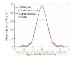 圖12 光束功率密度離散點擬合為高斯曲線