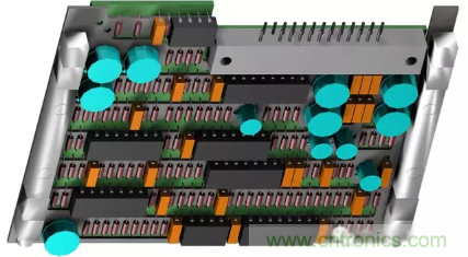圖2 F-16戰斗機的雷達干擾裝置PCB,在所有的零組件下方有一個鋁制散熱器;千萬別讓機械工程師為了散熱器設計而自作主張布局PCB,以免犧牲電子功能。