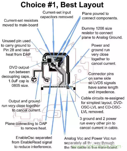 我在某家半導體公司任職時,做的是驅動PC用DVD刻錄機內雷射頭的芯片;我看了一眼某客戶設計的軟性電路板原型,就知道他們缺乏高速或散熱設計方面的經驗,畢竟他們之前做的CD刻錄機數據速率比較低,而且用的芯片不會產生太多熱度。而我們花了大半年的時間教客戶該怎么設計他們的PCB(圖5)。