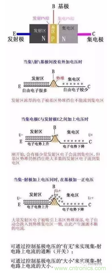 【導讀】這里講解三極管的發明史、核心結構、結構示意圖、制造流程、結構切面圖、工藝結構特點、電路符號、電流控制原理示意圖、基本電路等,讓大家全面了解三極管。