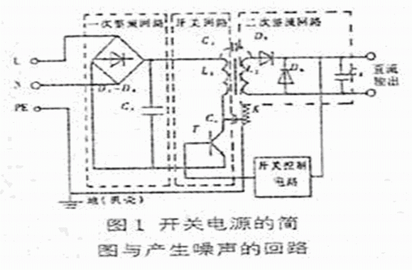 開關電源利用半導體器件的開和關工作,并以開和關的時間比來控制輸出電壓的高低,由于其通常工作在20KHz以上的開關頻率工作,開關電源內的dv/dt、di/dt很大,產生嚴重的浪涌電壓、浪涌電流和其它各種噪聲。圖1是典型的開關電源的簡圖和產生噪聲的回路,含有大量高次諧波的噪聲通過閉臺回路向空間輻射電磁能量,即差模電流的輻對干擾。通常的閉合環形回路的形狀都是不規則的,這里我們只討論一般的模型,如圖2所示。
