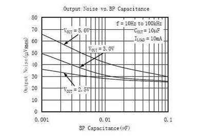 為降低基準噪聲,用于連接基準旁路電容。增大旁路電容能夠使基準噪聲成為產生LDO輸出噪聲的次要因素,有利于減小輸出噪聲。建議使用陶瓷電容的典型值為470pF到0.01µF。也可使用此范圍以外的電容,但會對輸入電源上電時LDO輸出電壓上升的速度產生影響,旁路電容值越大,輸出電壓上升速率越慢。在使用時這點要注意。
