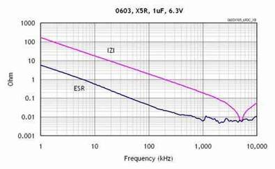 LDO需要增加外部輸入和輸出電容器。利用較低ESR的大電容器一般可以全面提高電源抑制比(PSRR)、噪聲以及瞬態性能。陶瓷電容器通常是首選,因為它們價格低而且故障模式是斷路,相比之下鉭電容器比較昂貴且其故障模式是短路。輸出電容器的等效串聯電阻(ESR)會影響其穩定性,陶瓷電容器具有較低的ESR,大概為10mΩ量級采用陶瓷電容時,建議使用X5R和X7R電介質材料,這是因為它們具有較好的溫度穩定性。圖為X5R的ESR和頻率曲線。