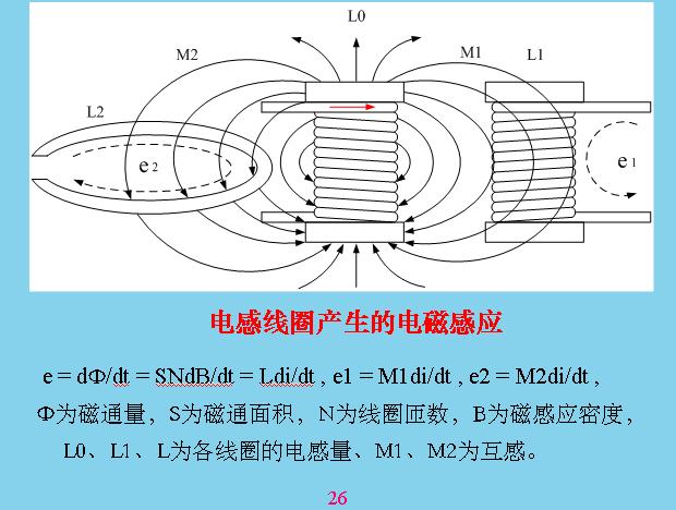 下面講磁場感應(yīng)與干擾。磁場只要有電容從導(dǎo)體里面流過就會產(chǎn)生磁場,磁場這個東西因為我們摸不到,所以現(xiàn)在我們都是用磁力線表示,我們可以判別它。這個磁場如果穿過周邊的電路,或者是其他電感線圈就會產(chǎn)生電子感應(yīng),這就相當(dāng)于一個有電流流過的電感線圈,會產(chǎn)生磁場,這個磁場對另外一個線圈也會產(chǎn)生感應(yīng)電壓。線圈對應(yīng)里面任何一個線路也會產(chǎn)生感應(yīng)電壓。所以電磁感應(yīng)就是因為磁力線穿過閉合回路而產(chǎn)生的,你要減少電壓的大小,就要減少干擾的大小,一個就是減少它的磁通量,感應(yīng)電壓與磁通量有關(guān),減少磁通量只能減少面積,減少圈圈的面積,或者減少磁場強(qiáng)度,磁場強(qiáng)度一般很難改變,你只能改變面積。另外,剛才說的干擾是位能改變才會干擾,如果只是一個通到位能不變,它不會干擾,永遠(yuǎn)是一個1安培,位能不變不會干擾。干擾是位能不斷改變,一下子變成1安培,一下子變成2安培,一下子變成3安培,一下子又變成負(fù)的安培。