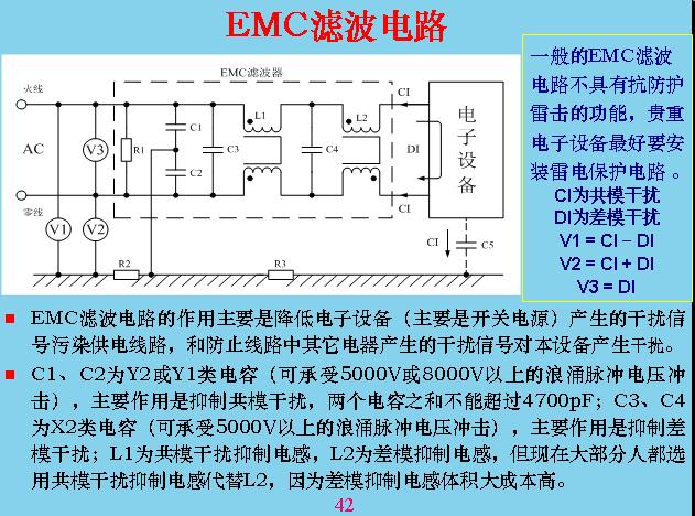 為了降低傳導(dǎo)干擾,現(xiàn)在一般在輸入電路里面都要加濾波器,這邊是設(shè)備產(chǎn)生的干擾,通過這幾個濾波以后就會把幾個電壓降低,這兩個電容是共模的濾波電容,這幾個有共模電感,也有差模電感,因為共模電感的體積比較大,成本比較高,所以大家都沒有用,都在用共模電感代替。因為共模電感本身有漏感,漏感對差模來說也有抑制作用,所以相對來說用共模電感代替差模電感,成本可以大大降低。這兩個電容很關(guān)鍵,在安全里面兩個的和不能超過470b,為什么?安全測試的時候在安全設(shè)備上加2500v交流電來測與地的漏電,如果超過2.5毫安就算不合格。這樣算的話50就是2500v電壓,算出來的電壓不能超過470b。按照共模預(yù)計,這兩個做得更大一點(diǎn),最大不能超過4700v。這是差模電容,差模電容沒有要求,用的越大越好。但是用得越大也有一個問題,把電容線拔掉的時候上面帶電不能超過,所以這里必須加一個放電電阻,這邊大的以后也可以加一個放電電阻,充電拔掉以后,下面人不能摸,會電到人,所以用放電電阻把它放掉。