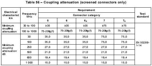 按IEC61196-1測試同軸電纜的方法,測試帶屏蔽的平衡電纜,短路8根芯線后用50Ω信號源激勵。被測試線長1米,測試頻率30MHz,頻率越高,線長越短導(dǎo)體表面轉(zhuǎn)移阻抗。主要用于評估連接硬件的屏蔽效率,其實(shí)測值不超過以下計(jì)算值。