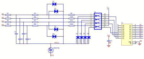 采樣電路的原理圖設計參見圖1: