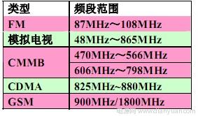 EMI主要通過PCB的走線、通孔和揚聲器的連線向外輻射,較大能量的EMI輻射需要一個“高效率”的天線,對不同的頻率,一個有效的天線長度是該頻率波長的四分之一(λ/4),小于這個長度,就不能形成有效的對外輻射。對30MHz的頻率,采用一般的FR4的PCB板,天線長度需要大于114.1cm才能形成有效的輻射。所以在手機上采用D類放大器時,在放大器輸出的PCB走線和揚聲器連線上的方波邊沿變化是EMI的最重要來源。特別是手機應用中所關心的一些頻段,如下表所示:基本都在100MHz以上,因此我們需要特別地關注由方波邊沿變化所引起的EMI輻射。