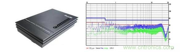 雖然電源自身電磁干擾方面投入了很大的設(shè)計(jì)成本,也符合承諾的各項(xiàng)指標(biāo)要求,但是電源在市場(chǎng)應(yīng)用方面還是難免出現(xiàn)電磁干擾超標(biāo)的問題;此時(shí),很多的設(shè)計(jì)工程師都會(huì)認(rèn)為問題的根源在于電源,這方面的認(rèn)識(shí)其實(shí)是有誤區(qū)的,因?yàn)殡姶鸥蓴_傳導(dǎo)騷擾測(cè)試項(xiàng)目,主要是針對(duì)電源端口的,那么電源端口就成了他的傳輸路逕,所有的電磁干擾都會(huì)經(jīng)過電源端口到達(dá)被測(cè)設(shè)備,但是測(cè)試設(shè)備測(cè)試到的電磁干擾除了來自電源本身外,主要的部分還包括整機(jī)中的其他部分產(chǎn)生的電磁干擾,以及設(shè)備內(nèi)部寄生參數(shù)的諧振產(chǎn)生的電磁干擾,這一類電磁干擾會(huì)通過電源端口耦合到測(cè)試設(shè)備,電源內(nèi)部的濾波器是無法進(jìn)行實(shí)現(xiàn)對(duì)這部分電磁干擾進(jìn)行濾波,電源應(yīng)用環(huán)境千差萬別,所有電源設(shè)計(jì)濾波器部分都是以解決自身的干擾為首要考慮條件的同時(shí),濾波器衰減特性及頻譜特性盡量會(huì)預(yù)留最大的余量,但不可能兼容所有應(yīng)用場(chǎng)合;那么這就要求我們的整機(jī)設(shè)計(jì)人員在設(shè)計(jì)電源前端時(shí)候,一定要按照電源廠家推薦的應(yīng)用電路進(jìn)行設(shè)計(jì),例如:LH15產(chǎn)品應(yīng)用過程中出現(xiàn)EMI超標(biāo)問題(見下圖)。