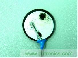 這種壓敏電阻通過擊穿點(diǎn)進(jìn)行電流泄放,在泄流點(diǎn)會(huì)形成大量的熱量,這種熱量最終會(huì)導(dǎo)致壓敏電阻燒穿(見下圖)。