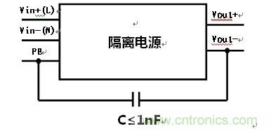 那么,如果隔離電源在應(yīng)用過程中一定要進(jìn)行輸出Vout-連接到PE端,可以按照上圖的連接思路,通過電容將這兩個(gè)端子進(jìn)行連接,這樣設(shè)計(jì)保證了客戶特殊使用要求的同事,對(duì)于上述問題也能夠有效的規(guī)避。