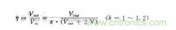 效率分析當(dāng)輸入電壓范圍為220 V±10%時(shí),整流濾波后的電壓為Vin±10%。串聯(lián)型穩(wěn)壓電路要求Vin-10%-Vout>dV。dV為輸入輸出最小壓差,對(duì)雙極型調(diào)整管,dV>2 V。效率: