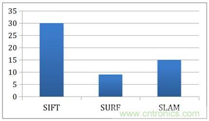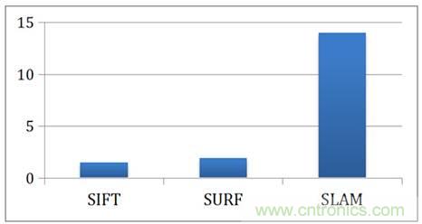 圖6展示了FPGA相對CPU在執(zhí)行SIFT、SURF以及SLAM算法的節(jié)能比。使用FPGA后,SIFT與SURF分別取得了1.5倍與1.9倍的節(jié)能比,而SLAM的算法取得了14倍的節(jié)能比。根據(jù)我們的經(jīng)驗,如果機(jī)器人將手機(jī)電池用于一個多核的Mobile CPU去跑這一套感知算法,電池將會在40分鐘左右耗光。但是如果使用FPGA進(jìn)行計算,手機(jī)電池就足以支撐6小時以上,即可以達(dá)到10倍左右的總體節(jié)能 (因為SLAM的計算量比特征提取高很多)。