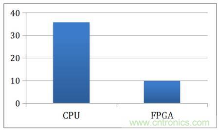 為了讓讀者對FPGA加速有更好的了解,我們總結(jié)了微軟研究院2010年對BLAS算法的FPGA加速研究。BLAS是矩陣運(yùn)算的底層庫,被廣泛運(yùn)用到高性能計算、機(jī)器學(xué)習(xí)等領(lǐng)域。在這個研究中,微軟的研究人員分析了CPU、GPU以及FPGA對BLAS的加速以及能耗。圖2對比了FPGA以及CPU、GPU執(zhí)行GaxPy算法每次迭代的時間,相對于CPU,GPU與FPGA都達(dá)到了60%的加速。圖中顯示的是小矩陣運(yùn)算,隨著矩陣的增大,GPU與FPGA相對與CPU的加速比會越來越明顯。