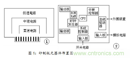 在印制板布置高速、中速和低速邏輯電路時,應按照圖1-①的方式排列元器件。