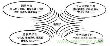家庭網絡的電磁環(huán)境是首先應研究的課題??梢钥吹?,在家庭網絡環(huán)境中,存在著多種類型的設備,如:信息處理系統(tǒng)、通信系統(tǒng)、家用電器等。這些設備組成網絡,并通過家庭網關,經由電信接入網,與電信業(yè)務網絡(如Internet網、IPTV網、軟交換網等)、設備管理平臺和業(yè)務管理平臺相連。家庭網絡設備采用有線或無線的方式通信,為用戶提供語音、視頻、文本和數據等多種形式的信息服務。