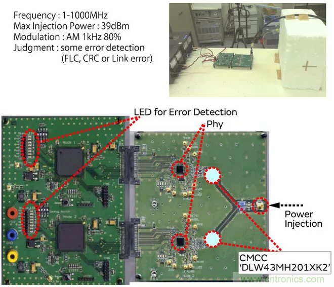 進行DPI(Direct Power Injection)試驗,確認了共模扼流圈的抗擾性改善效果。