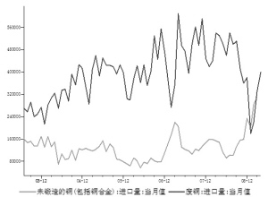 我國銅分月進口量(噸) 數(shù)據(jù)來源:Wind資訊