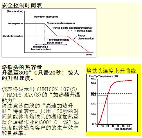 - 具備節(jié)能功能。當(dāng)一段時(shí)間不使用烙鐵時(shí)加熱器溫度會自動降低至設(shè)定的作業(yè)準(zhǔn)備溫度。 ( 當(dāng)拿起烙鐵手柄時(shí)溫度會自動上升恢復(fù)至設(shè)定的作業(yè)溫度 )