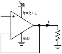 圖1單電源運(yùn)算放大器,帶有一個對地的電阻負(fù)載