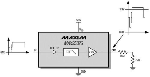 圖3MAX95091.8V應(yīng)用電路處理50%平場信號,大大降低了功耗