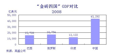 圖3:2008年金磚四國GDP對(duì)比。數(shù)據(jù)來源:高盛