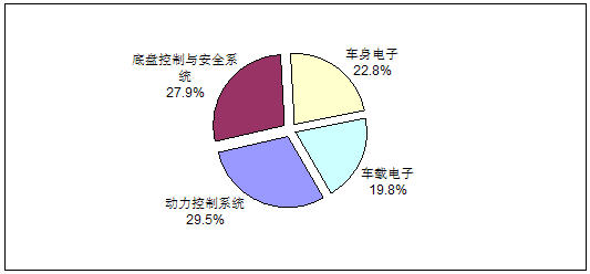 在國家《汽車產業調整和振興規劃》等政策的推動下,區域銷售壁壘被打破,小排量汽車購置稅降低……汽車消費市場環境不斷改善。從2009年汽車生產銷售情況來看,中國汽車消費第二次高峰已經提前啟動,汽車總產量從2月份開始回暖,而6月份中級轎車同比的增長標志著中國私人汽車消費的全面復蘇。2009年1-8月份,中國共生產汽車825.07萬輛,同比增長26.55%,位居全球第一。下游市場的蓬勃發展,將推動汽車電子市場快速增長。