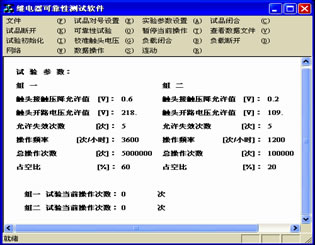 一是實時檢測與處理程序,包括了試驗參數(shù)的設(shè)置,對試驗狀態(tài)以及失效數(shù)據(jù)的保存,對失效數(shù)據(jù)進行數(shù)學(xué)分析,打印報表等,檢測裝置記錄的失效數(shù)據(jù)有失效時間,失效試品號、觸點號,觸點失效的類型,失效時觸點電壓以及各觸點累計失效次數(shù)等;