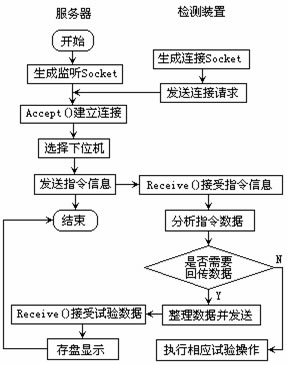 最后,通信結(jié)束后,通過CAsyncSocket::Close()函數(shù)銷毀對象。服務(wù)器與檢測裝置的通訊流程見圖3。