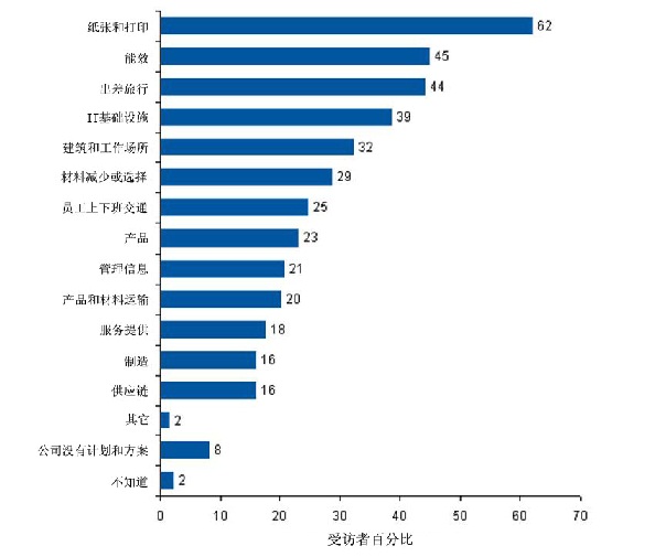 大多數(shù)企業(yè)都集中在相對(duì)容易、方便并熟悉的方面來提高能效、減少溫室氣體排放,如在節(jié)約用紙,減少差旅及IT基礎(chǔ)設(shè)施上。這些舉措有時(shí)能解決企業(yè)的實(shí)質(zhì)問題,有時(shí)卻不能解決實(shí)質(zhì)問題。但本質(zhì)上,這些舉措都與優(yōu)先次序沒有多大關(guān)系。IT企業(yè)需在能效和減少溫室氣體排放方面采取更為綜合的舉措。