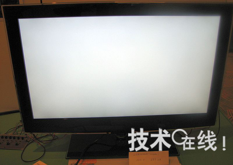 端面照光型LED背照燈的調光工作狀態。 32英寸電視的功耗為9.9W(論文編號DES2-3)。LED的位置共有6處,上下側各兩處,左右和中間各一處。屏幕上部較亮,下部較暗。采用這種背照燈時,僅中央部分(面積10%左右)的圖像較亮
