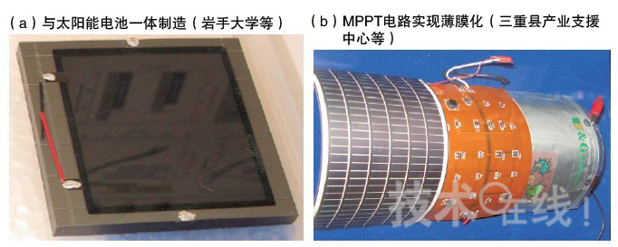 (b)為三重縣產(chǎn)業(yè)支援中心等的開發(fā)示例,與太陽(yáng)能面板、最大功率點(diǎn)跟蹤(MPPT)電路,以及鋰聚合物充電電池進(jìn)行了組合。