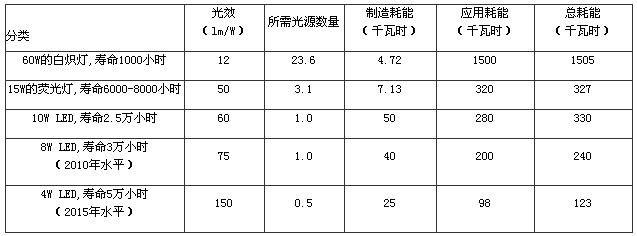 2.表中每個照明燈具提供600流明以上的光輸出,所需光源的數量、耗能統計均按工作25000小時計算。