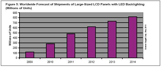 - 預計2010年大尺寸LED背光液晶面板出貨量將達2.767億臺