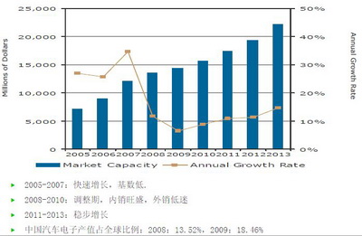 • 汽車電子,2010年—2013年將會是穩步增長期
